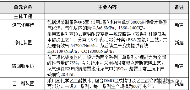 建設(shè)內(nèi)容:包括水煤漿制合成氣裝置、凈化裝置、H2/CO分離裝置、草酸二甲酯裝置、乙二薛裝置等。公用工程及配套輔助