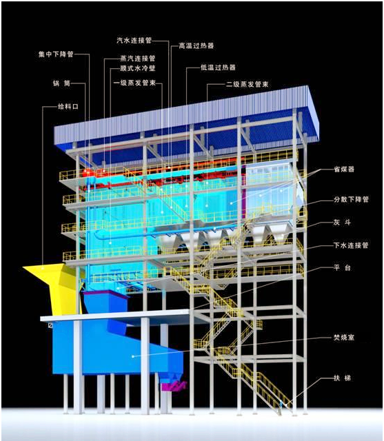 3、針對高濃度、高處理量含鹽廢液采用一體化焚燒鍋爐對含鹽廢液進行焚燒處理。采用特殊設計的燃燒器布置方式,助燃空氣分級送入與廢液充分混合燃燒,可以實現(xiàn)含鹽廢液的完全熱分解,保證熔融鹽從爐底流出,產(chǎn)生蒸汽供工廠使用。