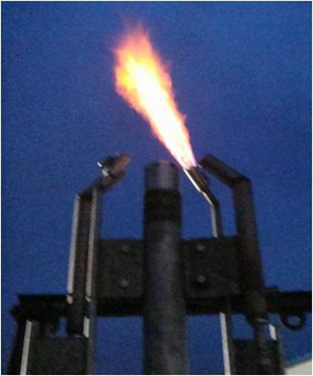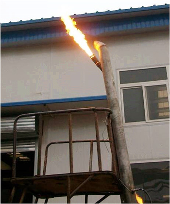 公司開發(fā)出的第五代新型長明燈?;鹧鎰倓牛皇軔毫託夂虻挠绊?,并且高效節(jié)能,單支長明燈天然氣耗氣量約3Nm3/h。